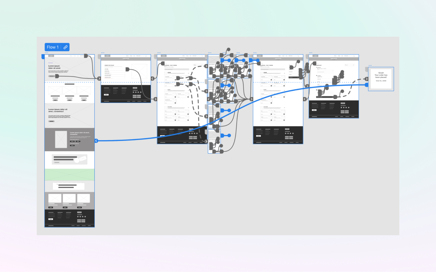Connecting the main user flow: customising and adding items to order, reviewing the order and proceeding to checkout.