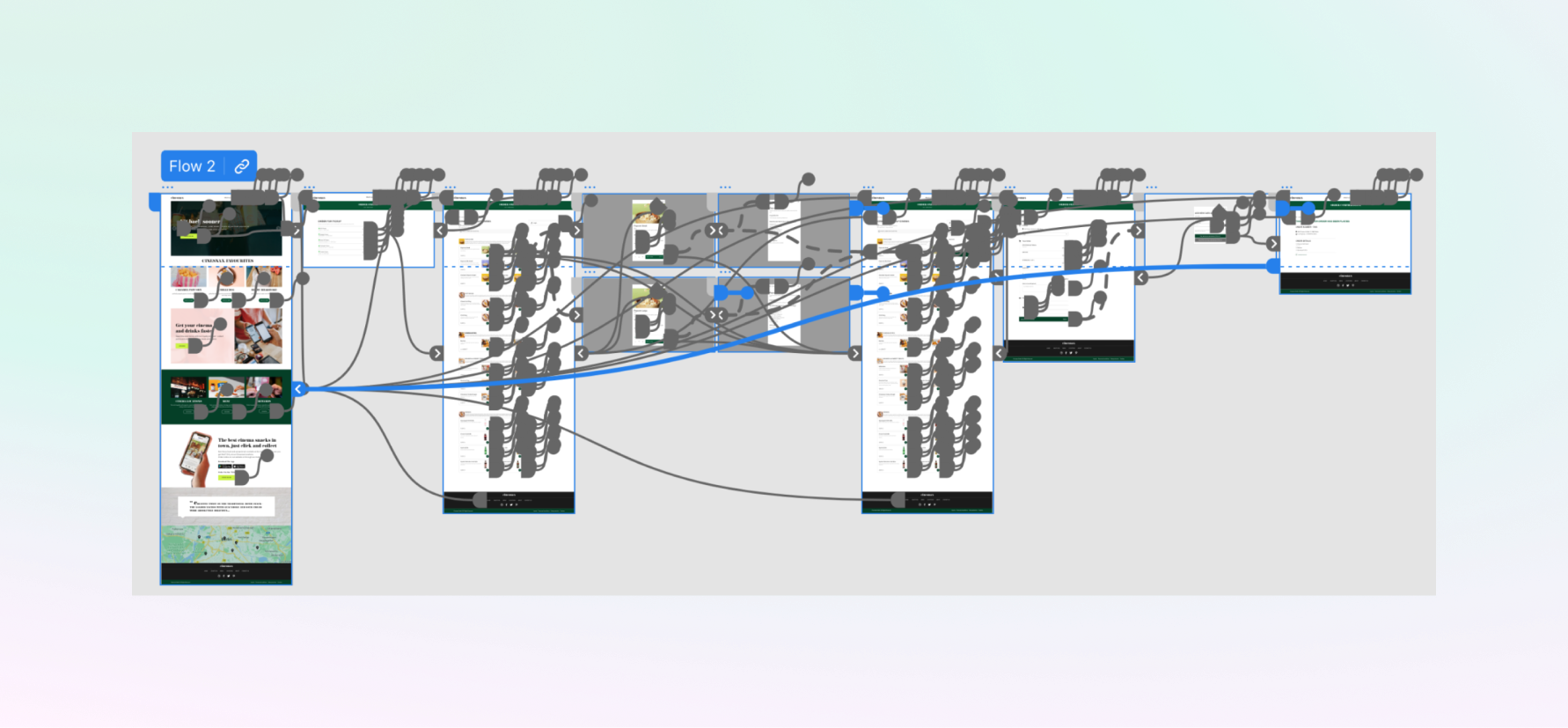 Connecting the main user flow: selecting location -> browsing menu -> customising snack item -> summary and payment -> confirmation screen.